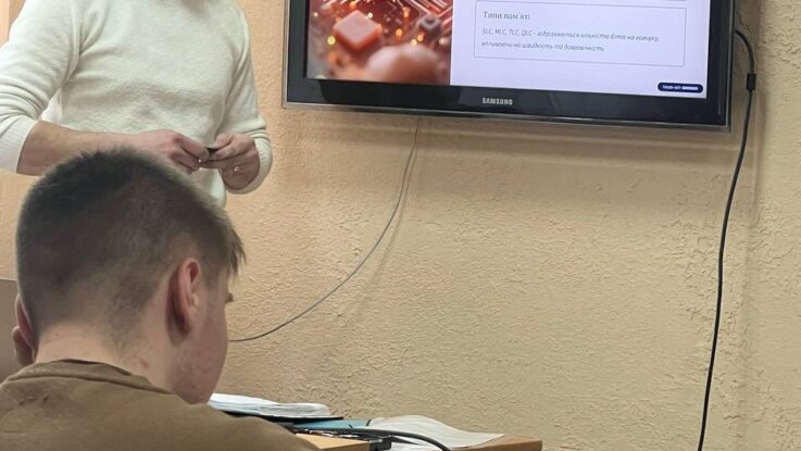 В рамках предметного тижня був проведений відкритий урок в групі 18 за професією «Оператор з обробки інформації, обліковець з реєстрації бухгалтерський даних» на тему: «Накопичувачі SSD. Принцип роботи». Мета уроку була досягнута в повній мірі. Студенти ознайомилися з внутрішньою будовою та технологією зберігання даних в накопичувачах SSD.