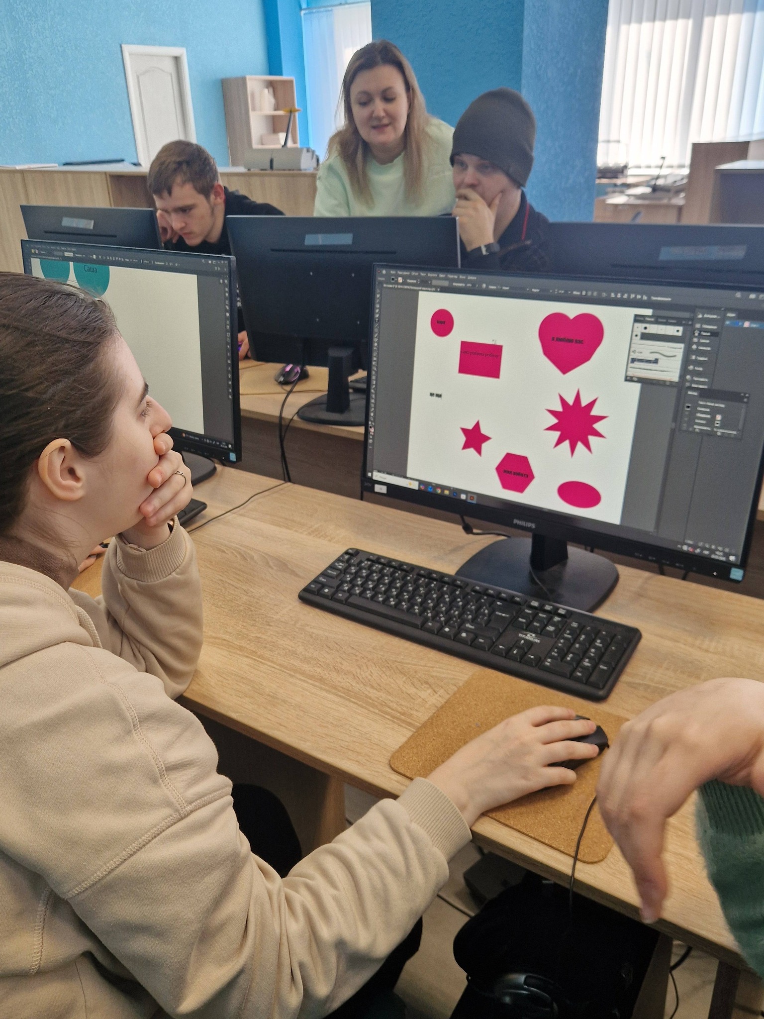 Поруч із ними — студенти 3 курсу груп 31 та 32 за професією «Оператор комп’ютерної верстки» та майстри виробничого навчання, які щиро ділилися своїм досвідом і майстерністю