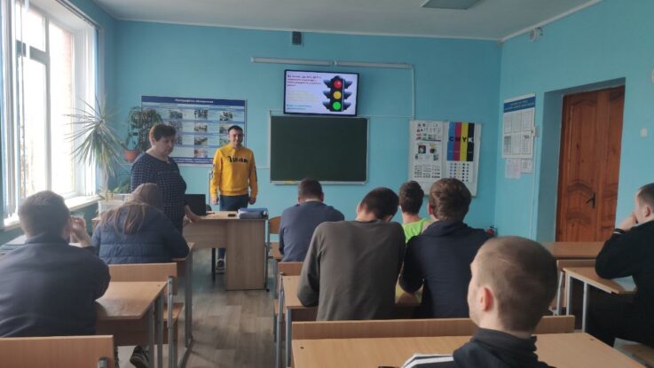 У рамках місячника з охорони праці майстром виробничого навчання Валентиною Фанфорою та соціальним педагогом Андрієм Гуцулом була проведена виховна година на тему: “Правила поведінки при дорожньому русі”.