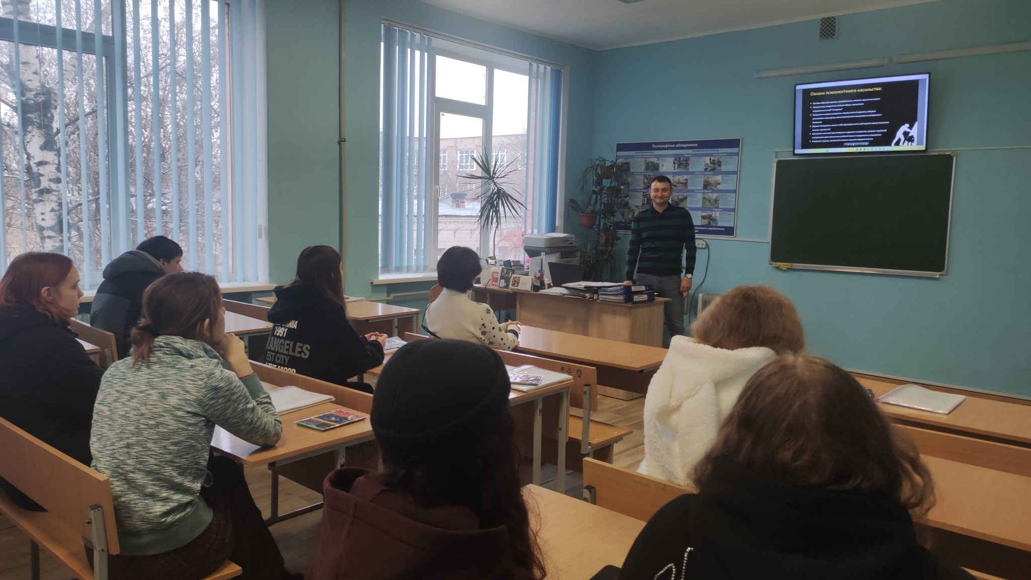 У рамках “16 днів проти насильства” соціальним педагогом Андрієм Гуцулум була проведена година спілкування для студентів 2-го курсу на тему: “Як не стати жертвою насильства”.